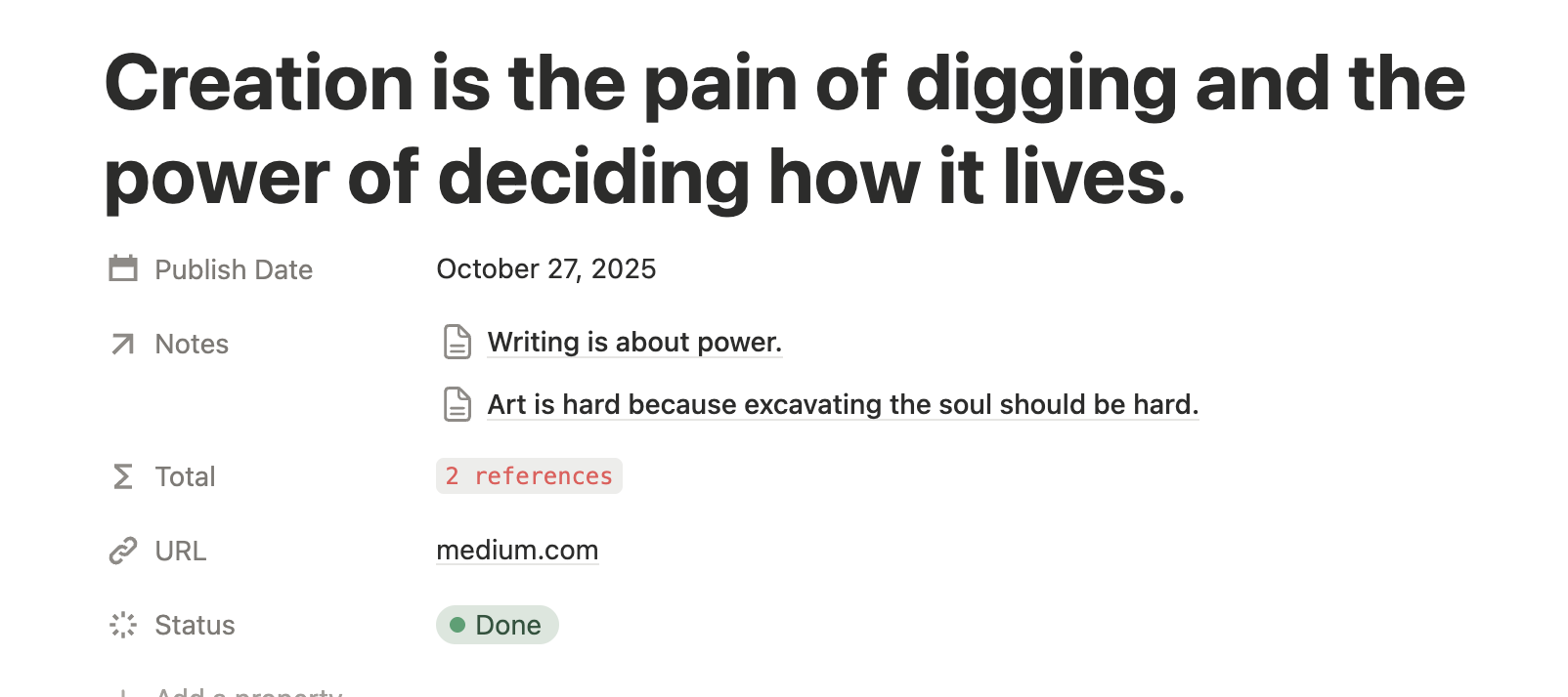 You can leave this blank if it’s a one-off reference, but I highly recommend building pages for authors that you’ve consumed multiple works of and want to add into your writing ecosystem.