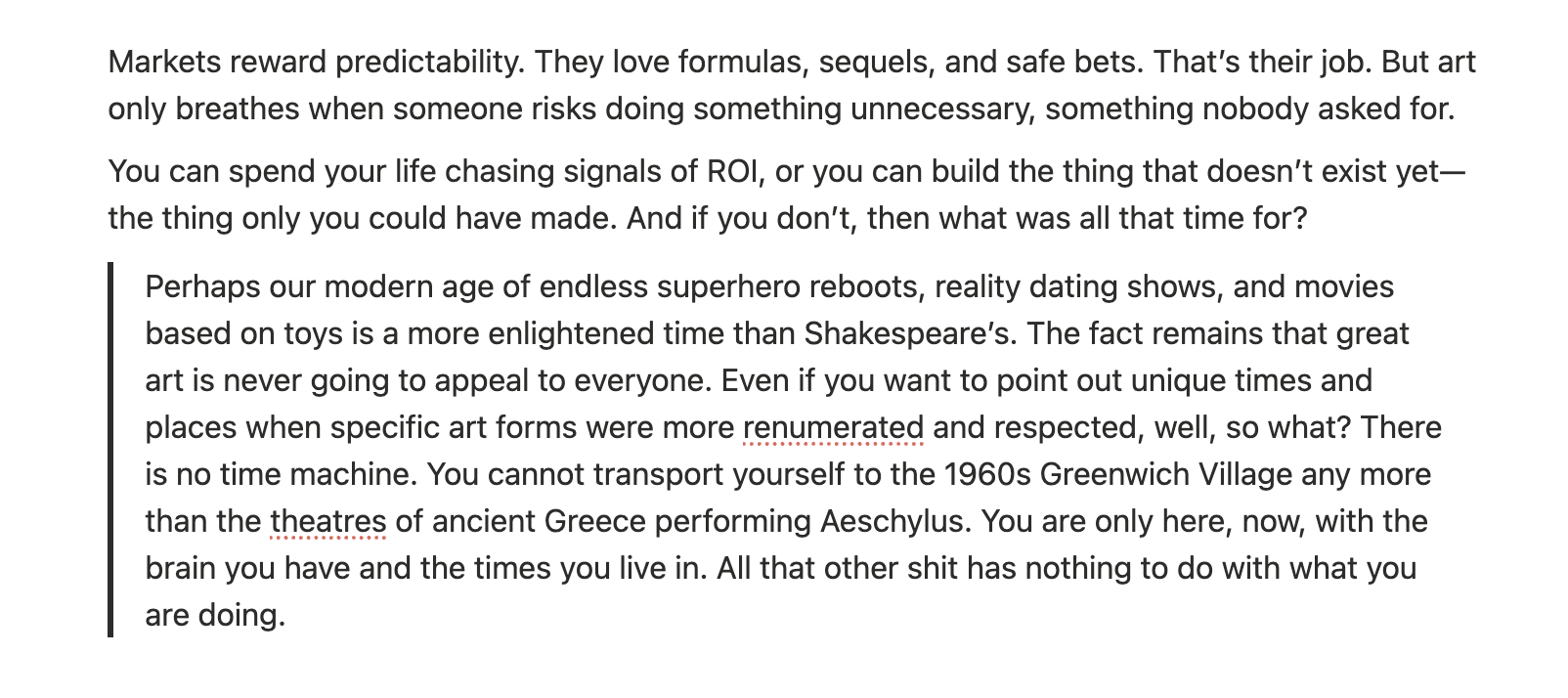 It may feel embarrassing at times to publish something that’s not smoothed out by an all-knowing AI. But with levity, I’ll say that publishing and the fear of public humiliation is what can help you become a better writer.